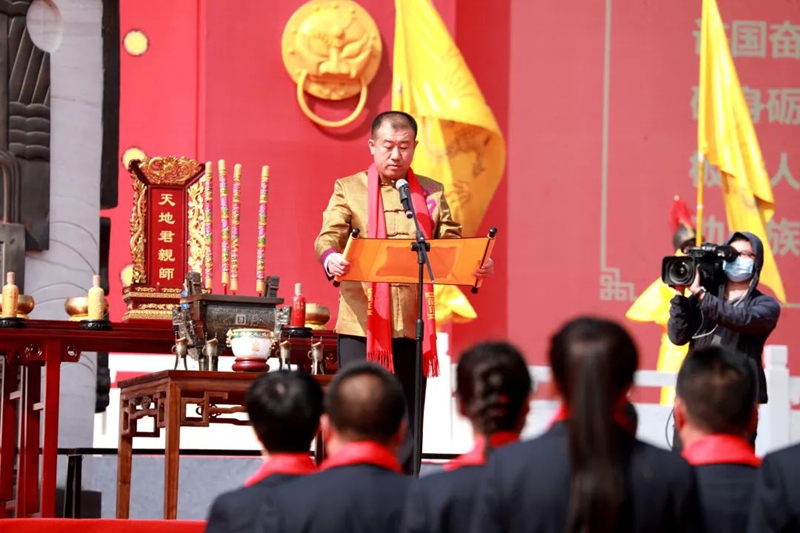 在莊嚴(yán)肅穆的鐘鼓聲中,板城酒業(yè)領(lǐng)導(dǎo)班子在祭祀官的指引下,通過恭請祖駕、誦讀祭文、獻(xiàn)酒五行、宣讀訓(xùn)詞等十多個步驟,莊嚴(yán)肅穆地完成了敬獻(xiàn)天地先祖的儀式。
