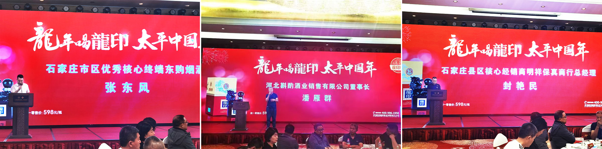 河北斟酌酒業(yè)銷售有限公司董事長潘雁群,石家莊縣區(qū)核心經(jīng)銷商明祥保真商行總經(jīng)理封艷民,石家莊市區(qū)優(yōu)秀核心終端東購煙酒商貿(mào)總經(jīng)理張東風(fēng)在活動中相繼發(fā)表講話,他們強(qiáng)調(diào),龍印承載著板城酒業(yè)的歷史與文化,鑒證著皇家歷史與板城酒業(yè)釀酒歷史的交融與發(fā)展,未來將與板城酒業(yè)一道為石家莊的客戶提供濃郁醇厚的好酒,最真誠的品質(zhì)服務(wù)。