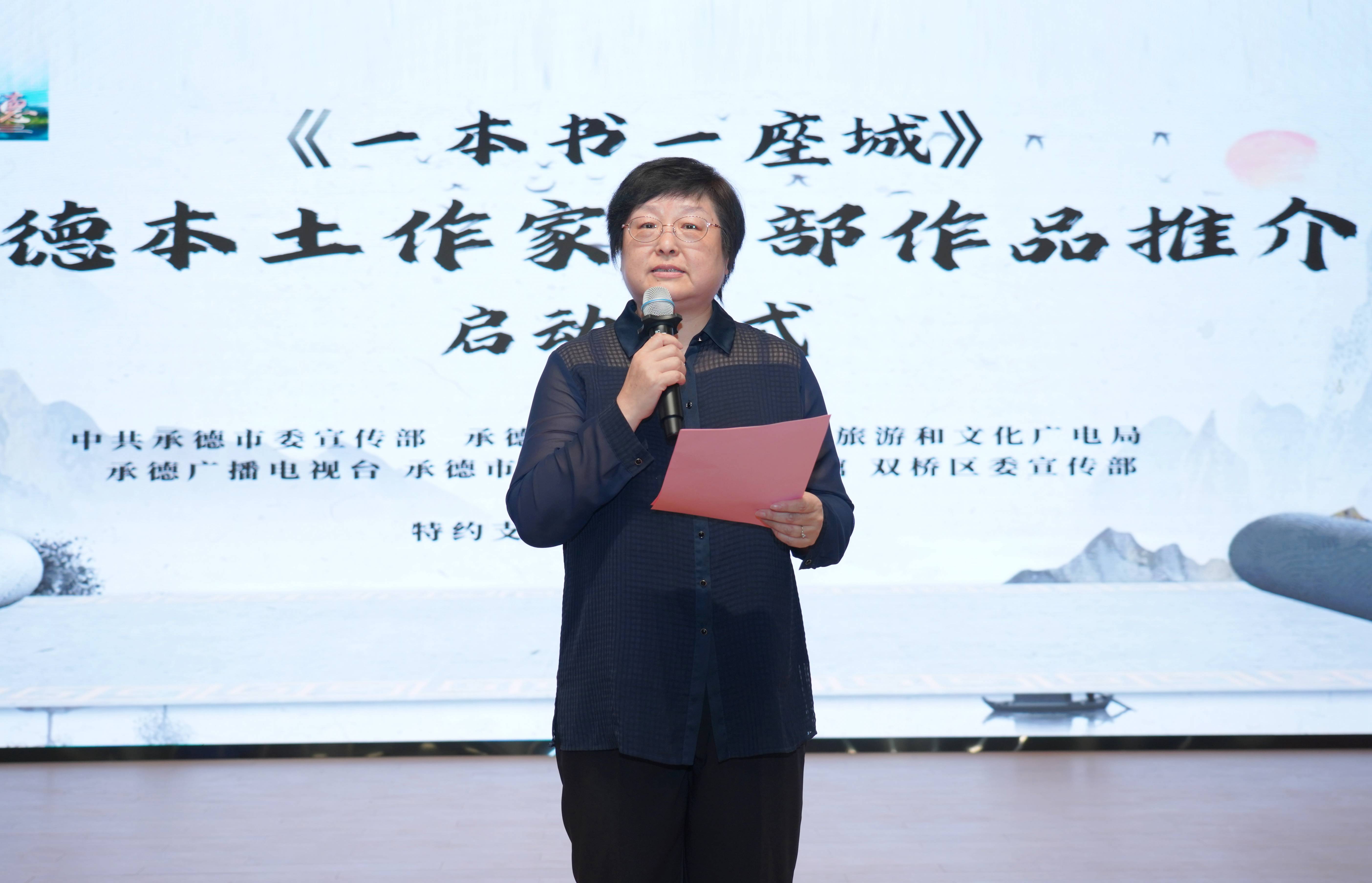 中共承德市委宣傳部三級(jí)調(diào)研員張穎致辭,希望通過此次活動(dòng),讓更多人看到承德文化的厚度與溫度,讓本土創(chuàng)作成為連接過去與未來的橋梁。