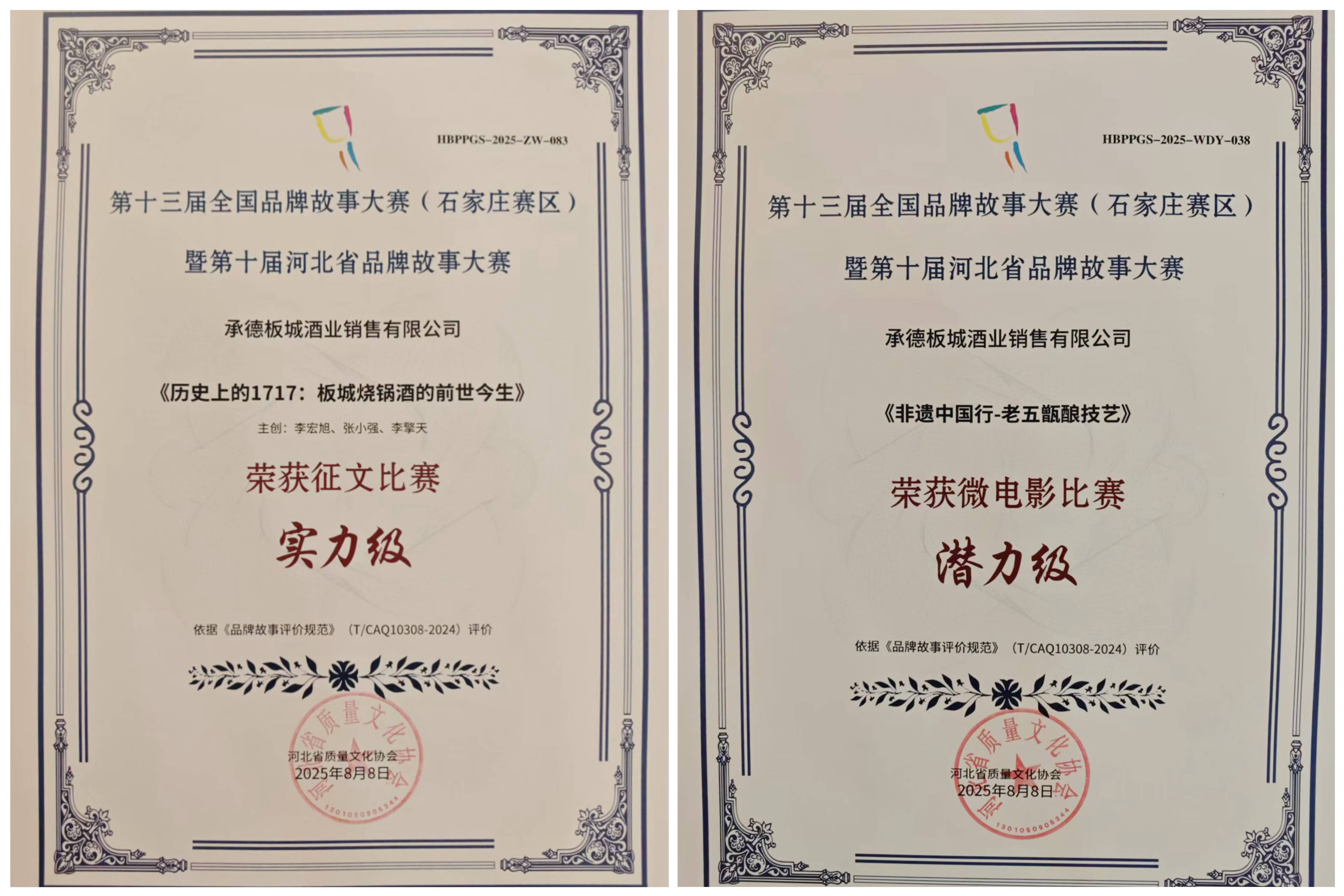 板城酒業(yè)憑借深厚的歷史底蘊(yùn)與創(chuàng)新的文化表達(dá),一舉斬獲雙項(xiàng)大獎——《歷史上的1717:板城燒鍋酒的前世今生》榮獲征文比賽實(shí)力級獎項(xiàng),《非遺中國行——老五甑釀造技藝》榮獲微電影比賽潛力級獎項(xiàng)!這不僅是對板城酒業(yè)品牌敘事能力的肯定,更是對“老五甑”非遺技藝與三百年匠心傳承的高度贊譽(yù)。