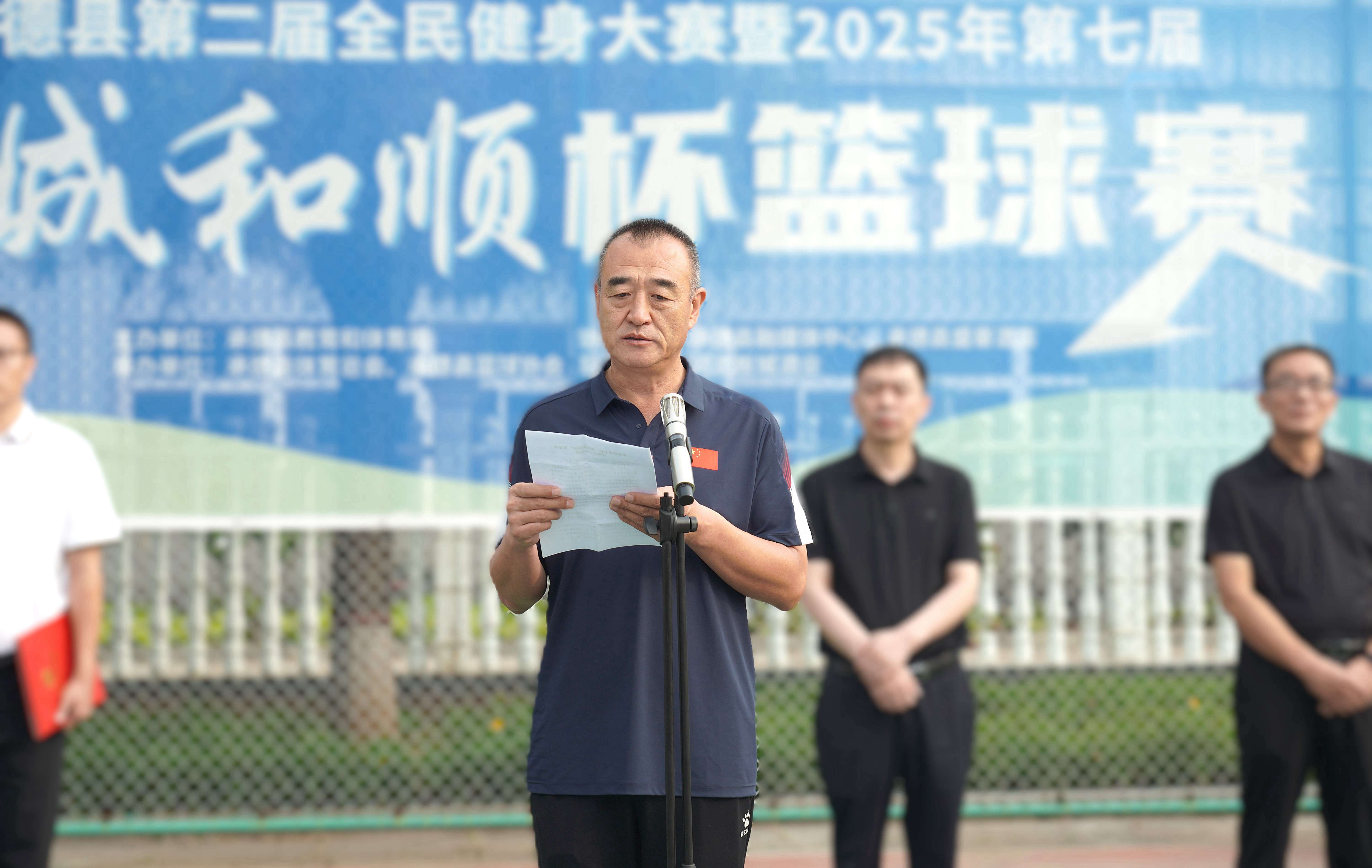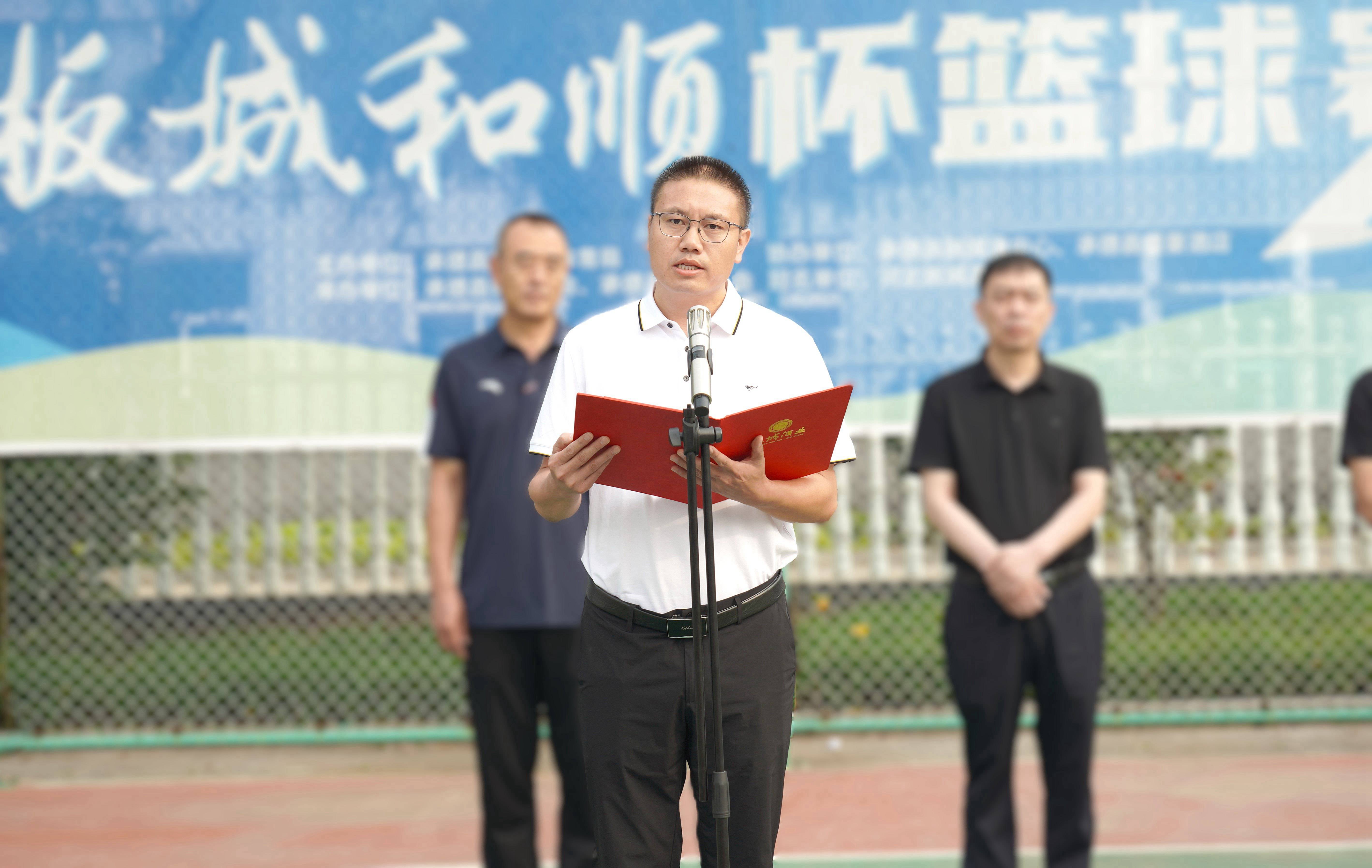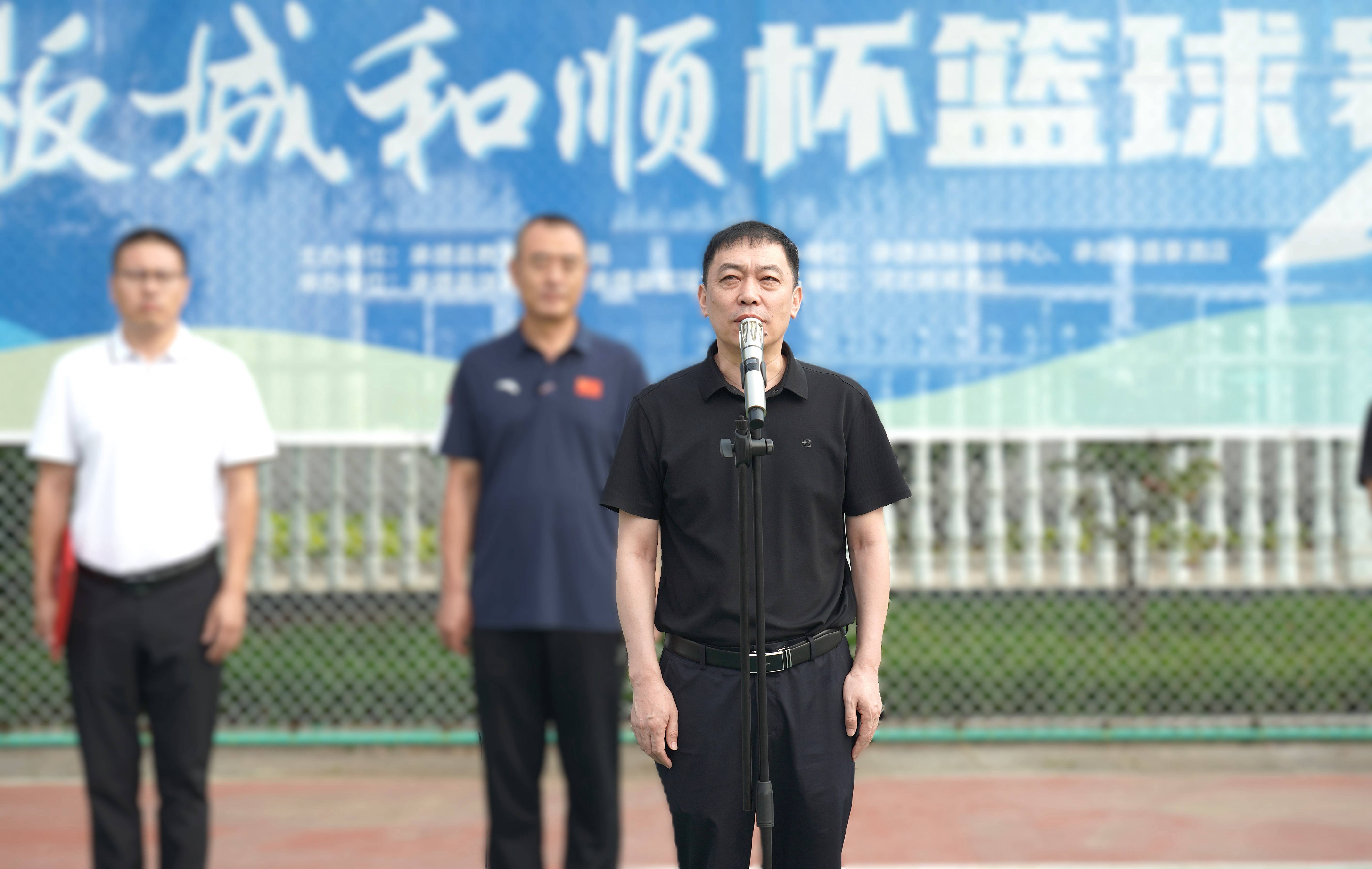 承德縣教育和體育局體育工作指導中心主任朱瑞東發(fā)表致辭,朱主任講到:“縣教體局聯合板城酒業(yè)持續(xù)舉辦體育賽事活動,連續(xù)舉辦七屆‘板城和順杯’籃球賽事,為承德縣全民健身提供了重要平臺,縣教體局將持續(xù)開展全民健身活動,搭建全民健身平臺,開展形式多樣的體育活動,讓承德縣人民參與多種體育賽事。”