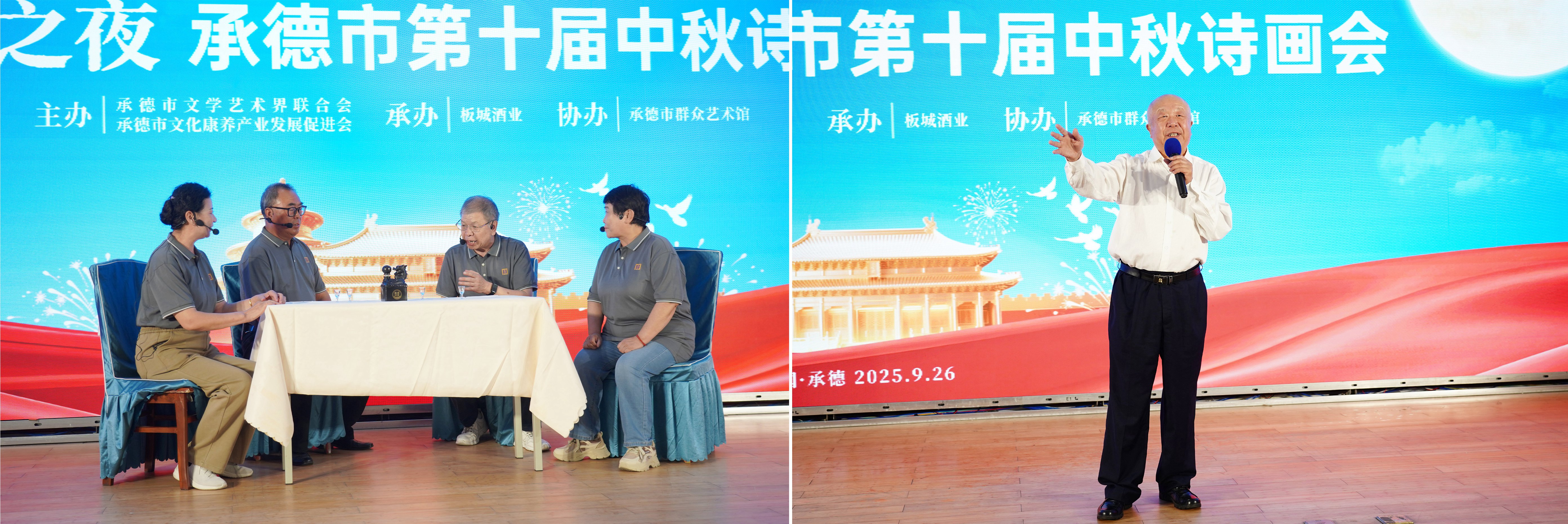 9月26日晚,由承德市文學(xué)藝術(shù)界聯(lián)合會(huì)、承德市文化康養(yǎng)產(chǎn)業(yè)發(fā)展促進(jìn)會(huì)主辦;板城酒業(yè)承辦;承德市群眾藝術(shù)館協(xié)辦的“龍印之夜——承德市第十屆中秋詩(shī)畫會(huì)”在板城酒業(yè)隆重舉行。